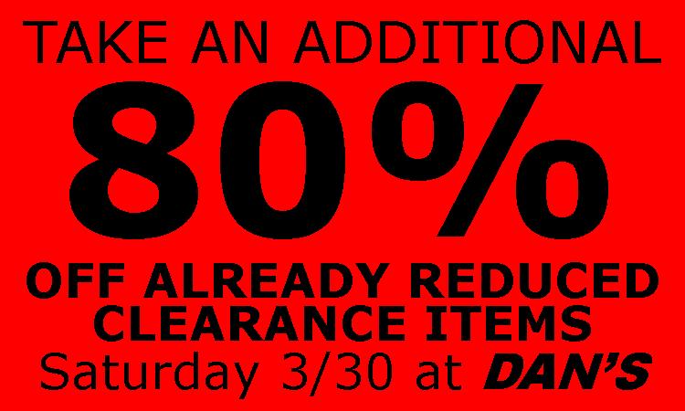 Take an Extra80% Off every item in our Clearance Room on Saturday 3/30!