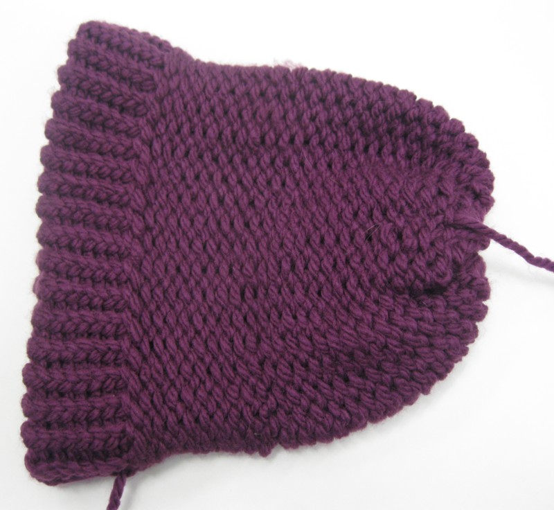 5. Repeat steps 3 and 4 until you have knit 12 rows for a child’s hat, or 16 rows for an adult hat. Find the loop of yarn from the first stitch on the first row.