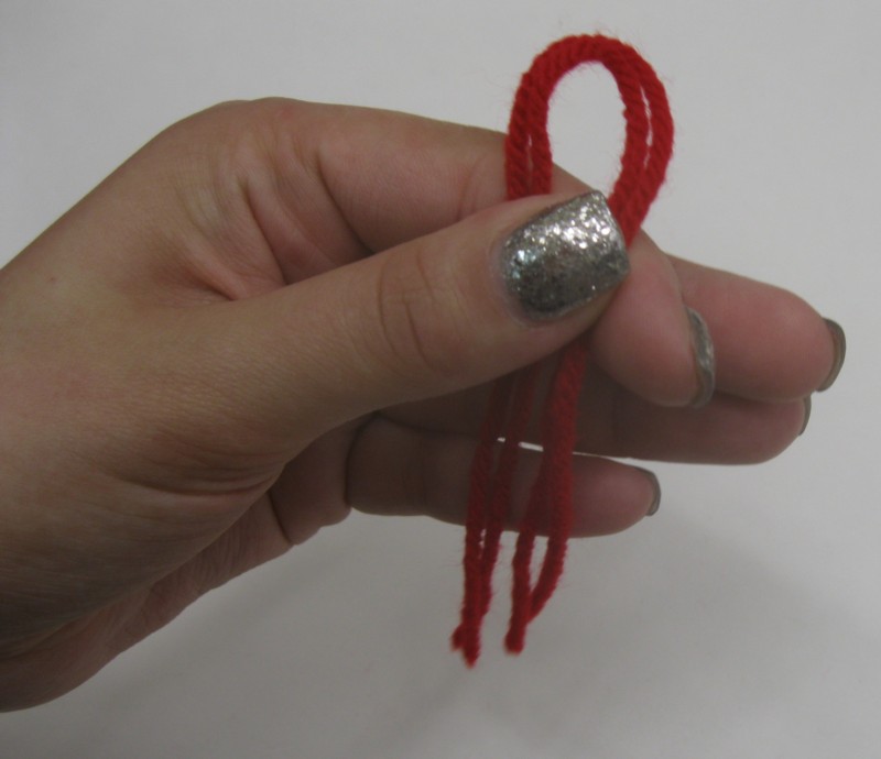 1. Cut three strands of yarn 18″ long