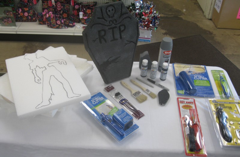 Good morning, and welcome to another Tutorial Tuesday! We have a real ooky-spooky one for you today! We’re making some awesome Halloween tombstone decorations out of Styrofoam.