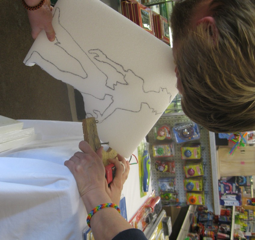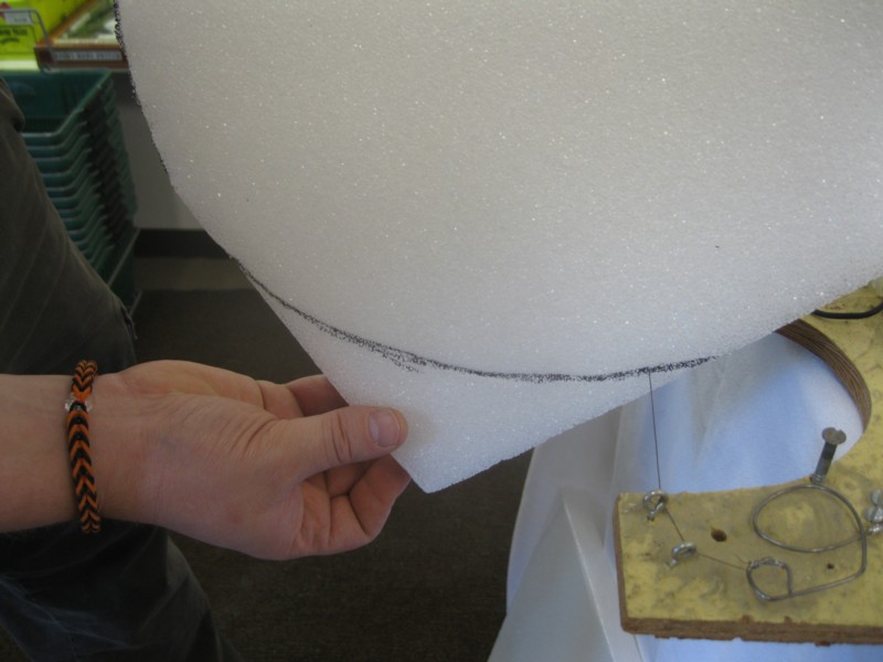 2. Cut the foam with the hot wire cutter.